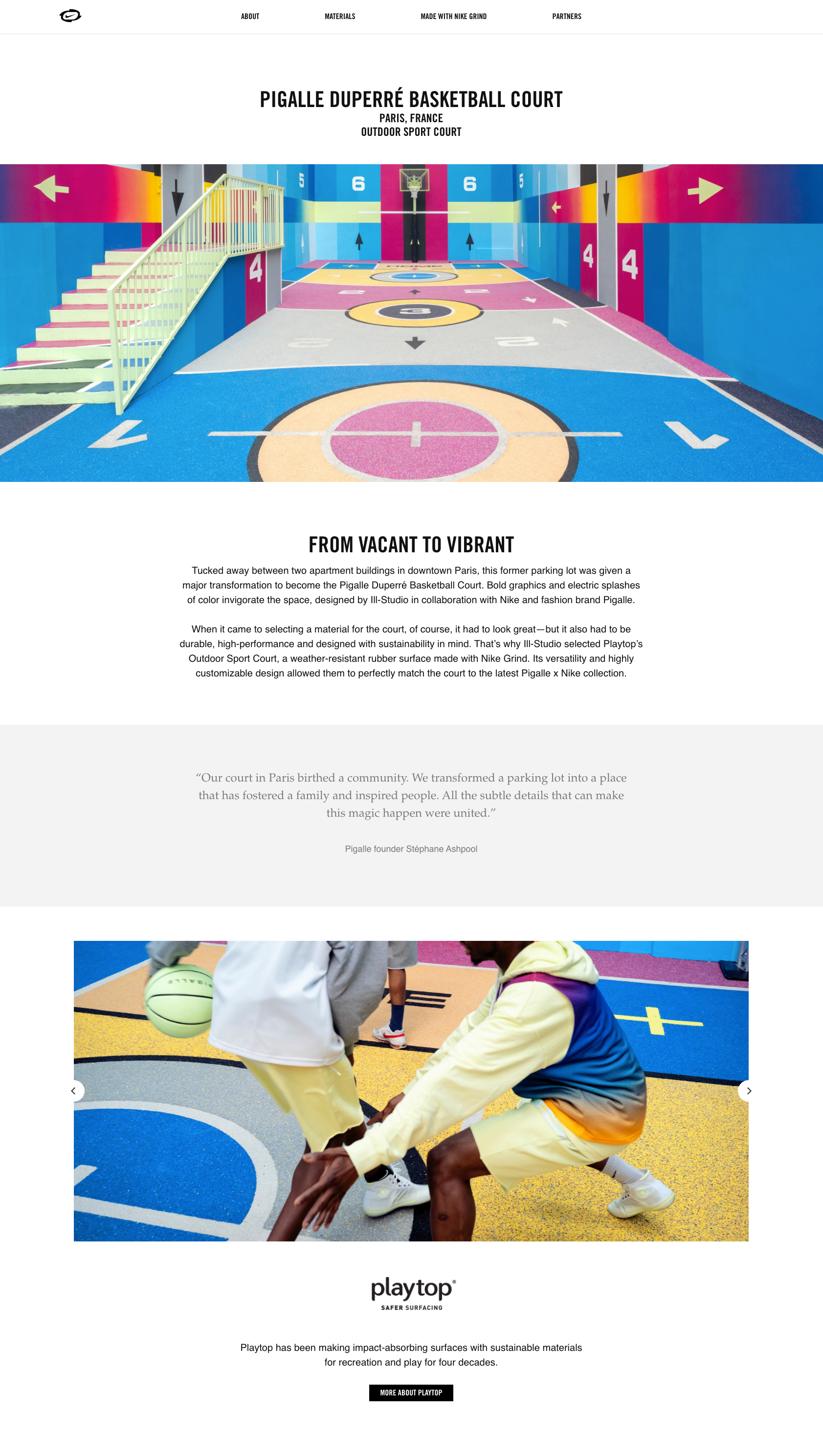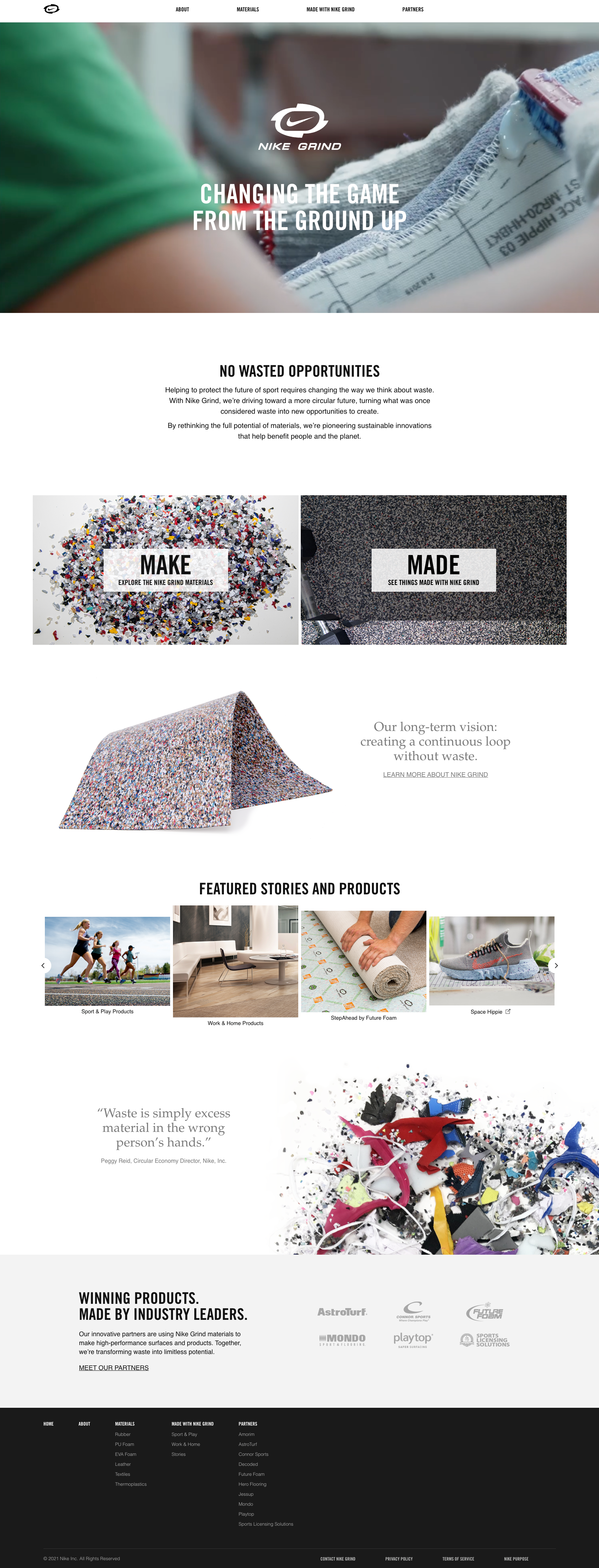 I redesigned the Nike Grind website to better align with Nike’s overall brand look and feel, improve the user experience, clarify the Nike Grind recycling process, and ultimately increase and capture surfaces lead acquisition.